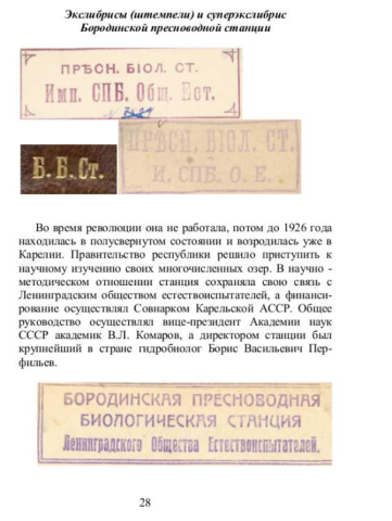 В Научной библиотеке Петрозаводского государственного университета, в секторе редкой книги хранится уникальная библиотека Бородинской пресноводной биологической станции — книги, журналы — 1100 экз. (580 книг и 520 периодических изданий) на русском и других европейских языках. Интересны шесть старопечатных изданий (в том числе Gmelin D.I.G. Flora Sibirica. — V.II. — Petropoli, 1749.), экземпляры с дарственными надписями русских и зарубежных ученых Н.И. Вавилова, В.В. Докучаева, Н.А. Буша, Д.Н. Кайгородова, Б.А. Келлера, В.Л. Комарова, Г.Ф. Морозова, А.Н. Краснова.
